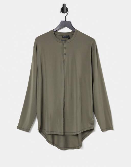 ASOS DESIGN - Lang T-shirt met lange mouwen van soepelvallende stof in kaki