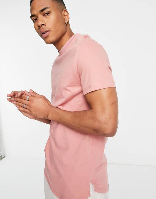 ASOS DESIGN - Lang T-shirt met zijsplitjes in roze - PINK