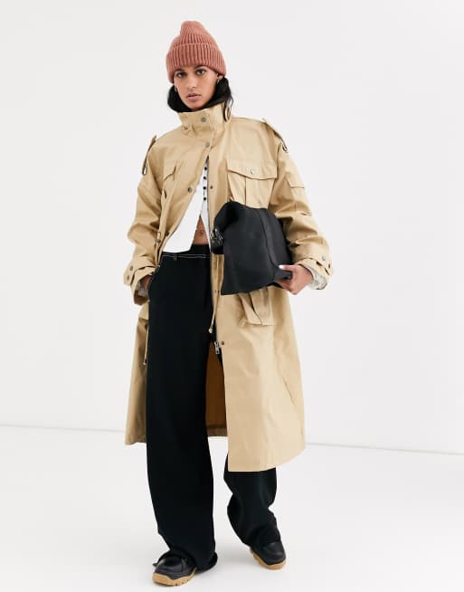 ASOS DESIGN - Lang utility-jack van katoen in steenkleur