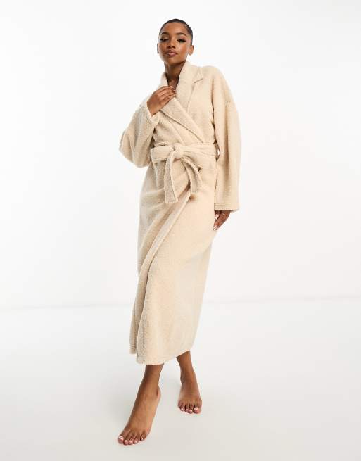 ASOS DESIGN - Lange badjas van borg in crème