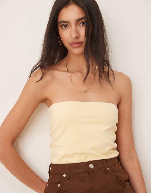 ASOS DESIGN - Lange bandeautop van katoen in botergeel