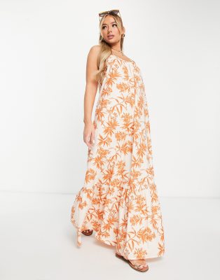 ASOS DESIGN - Lange cami-strandjurk met verlaagde zoom en natuurlijke tropische print