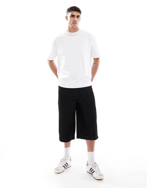 ASOS DESIGN - Lange denim jort in zwarte wassing