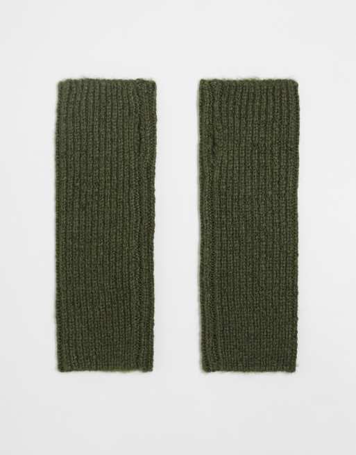 ASOS DESIGN - Lange gebreide palmwarmers in kaki