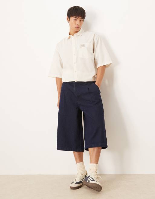 ASOS DESIGN - Lange geplooide denim jort in indigo