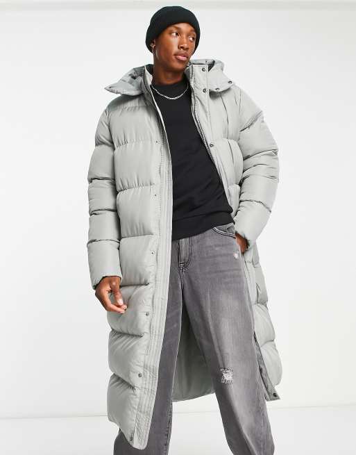 ASOS DESIGN - Lange gewatteerde jas in grijs
