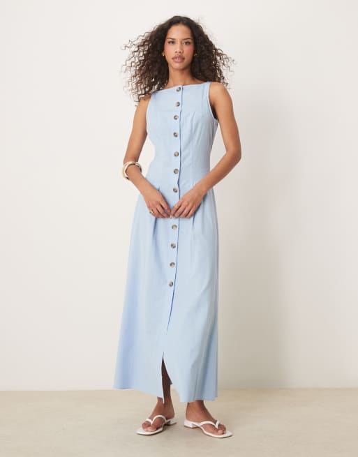 ASOS DESIGN - Lange giletjurk met rechte hals en knoopsluiting in blauw