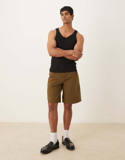 ASOS DESIGN - Lange shorts met plooien in kaki