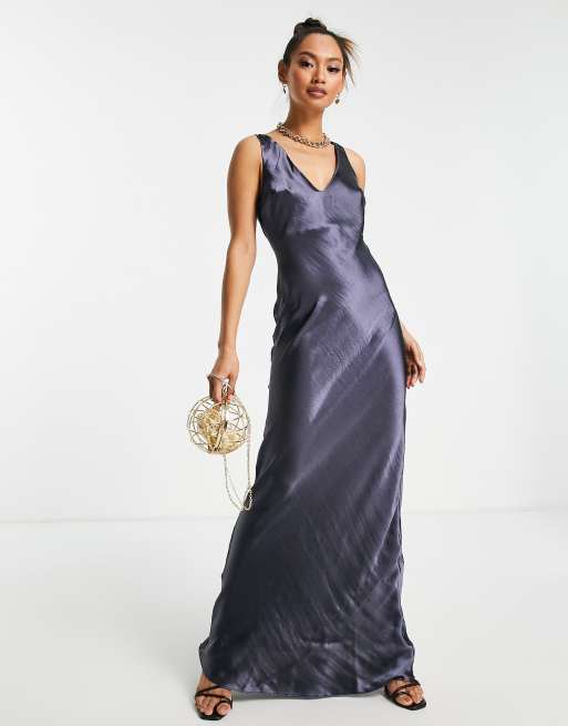 ASOS DESIGN - Lange slipdress van schuin gesneden satijn met zachte V-hals