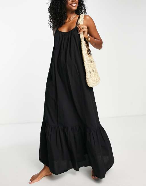 ASOS DESIGN - Lange strandjurk met langere achterkant en camibandjes in zwart