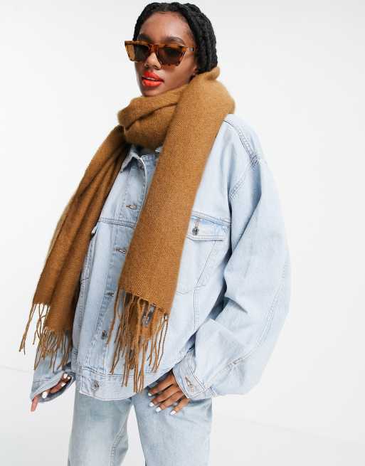 ASOS DESIGN - Lange, superzachte geweven sjaal met kwastjes in bruin