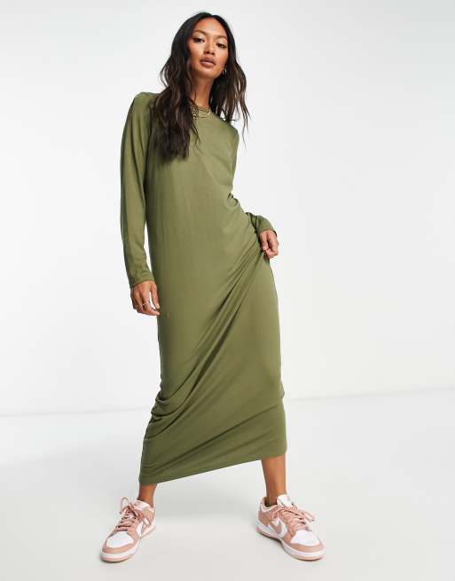 ASOS DESIGN - Lange T-shirtjurk met lange mouwen in kaki