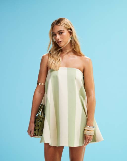 ASOS DESIGN - Lantern - Mini-jurk in saliegroen met witte streep