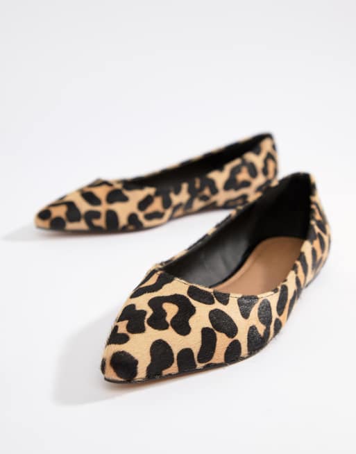 ASOS DESIGN - Latch - Leren ballerina's met spitse neus in luipaard pony