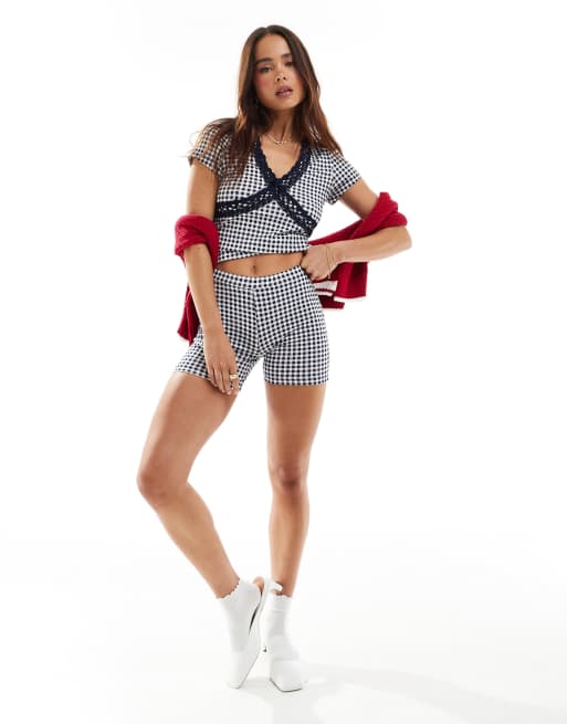 ASOS DESIGN - Leggingshort met gingham ruit, deel van co-ord set