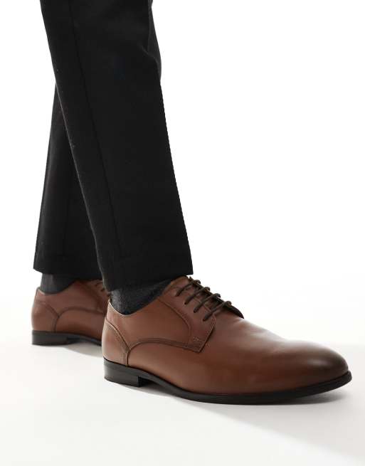ASOS DESIGN - Leren derby schoenen met veters in bruin