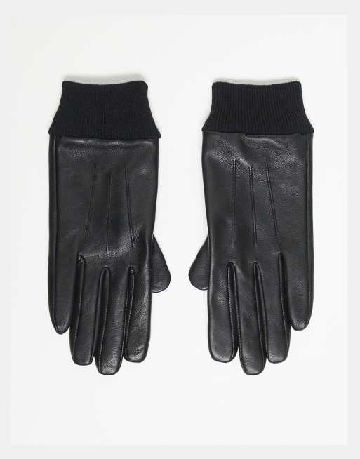 ASOS DESIGN - Leren handschoenen met touchscreen-functie en geribbelde manchetten in zwart