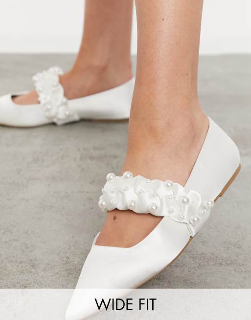 ASOS DESIGN - Liberty - Mary jane ballerina's met brede pasvorm, punt en versierde gevlochten band in ivoor
