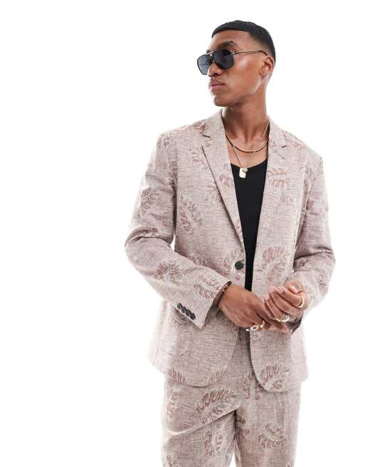 ASOS DESIGN - Lichtgewicht smal colbert met linnen in beige jacquard