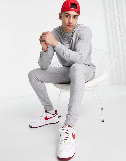 ASOS DESIGN - Lichtgewicht trainingspak met sweatshirt en skinny joggingbroek in gemêleerd grijs - GREY - GREY