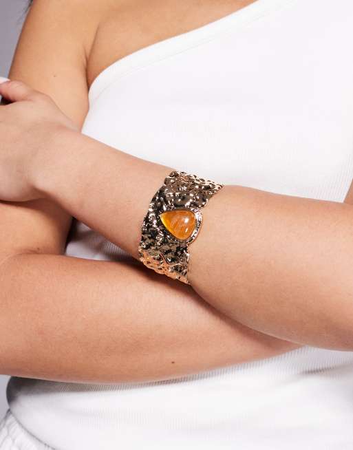 ASOS DESIGN - Limited Edition - Brede armband met abstracte gesmolten textuur in goudkleur