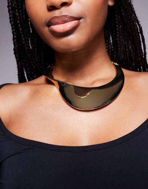 ASOS DESIGN - Limited Edition - Choker halsketting met breed abstract gedraaid ontwerp in goudkleur