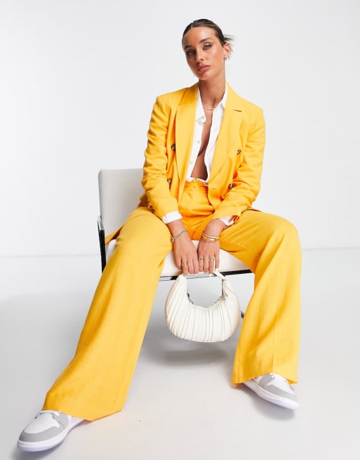 ASOS DESIGN - Linnen pak met ruimvallende broek met wijde pijpen in citrus