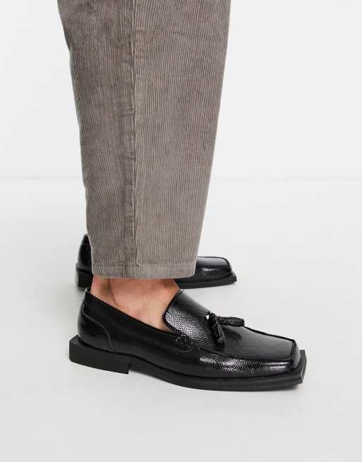 ASOS DESIGN - Loafers met vierkante neus van zwart imitatieleer