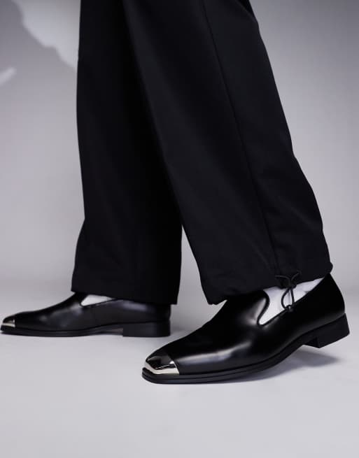 ASOS DESIGN - Loafers met zilveren teenstuk in zwart