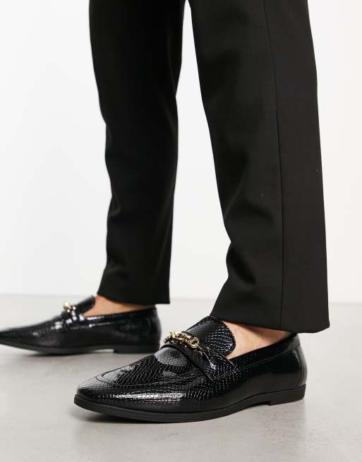 ASOS DESIGN - Loafers van imitatiekrokodillenleer met gouden trens in zwart