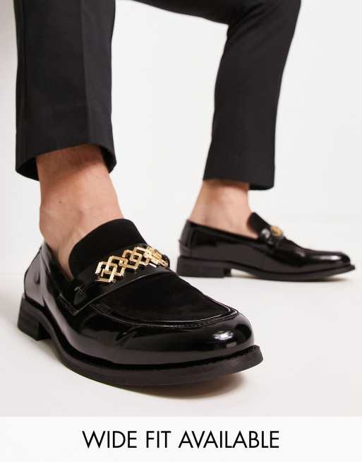 ASOS DESIGN - Loafers van imitatieleer met contrasterende broche in zwart