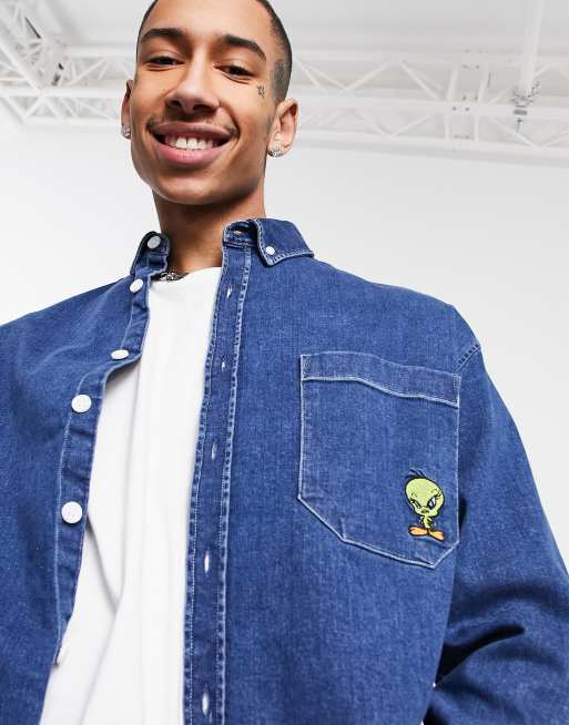ASOS DESIGN - Looney Tunes - Oversized overhemd in jaren 90 stijl met Tweety Bird-borduursel