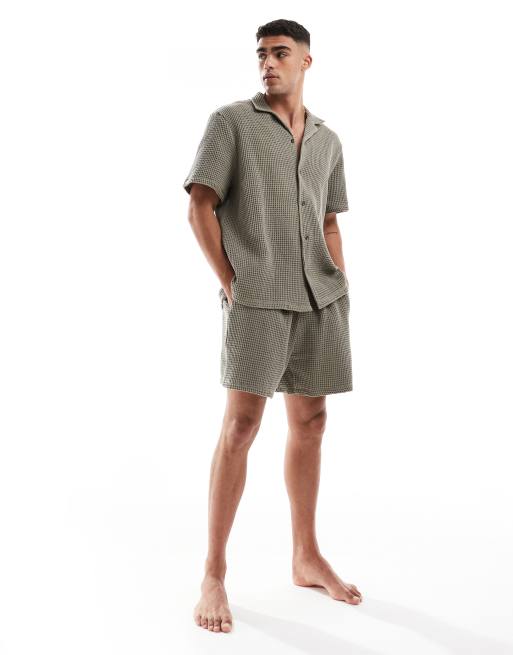 ASOS DESIGN - Loungekledingset met wafelstructuur in kaki