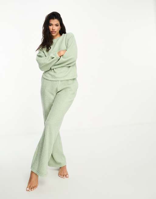 ASOS DESIGN - Loungeset met sweater en broek met wijde pijpen van borg in saliegroen