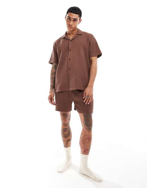 ASOS DESIGN - Loungeset met wafelstructuur in bruin