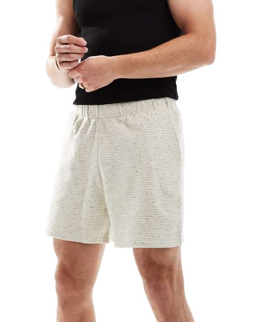 ASOS DESIGN - Loungeshort met gemêleerde wafelstructuur in ecru