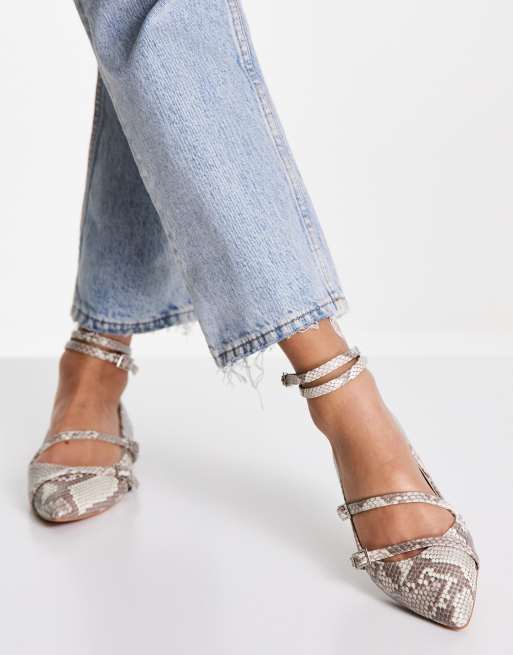 ASOS DESIGN - Ludo - Puntige ballerina's met bandjes in slangenprint