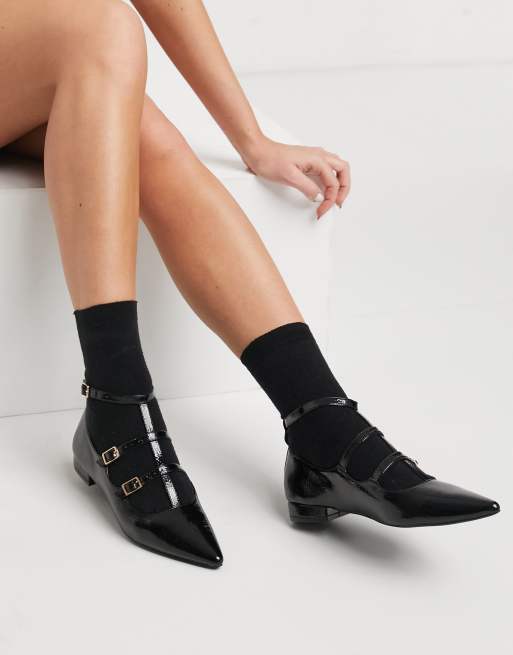ASOS DESIGN - Lyra - Puntige Mary-Jane ballerina's met bandjes in zwart