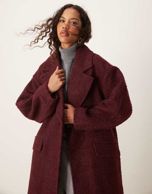 ASOS DESIGN - Makkelijke bouclé jas in bordeauxrood