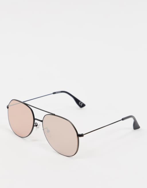 ASOS DESIGN - Mat-zwarte pilotenbril met roségouden glazen