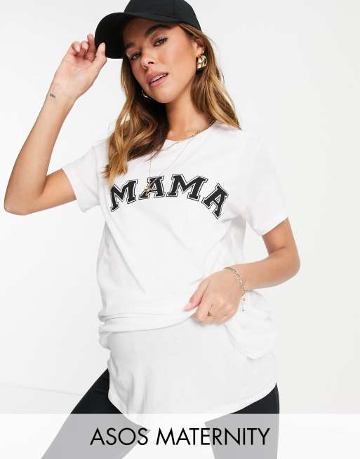 ASOS DESIGN Maternity - Dubbellaags T-shirt met borstvoedingsfunctie en 'Mama' print in collegestijl in wit