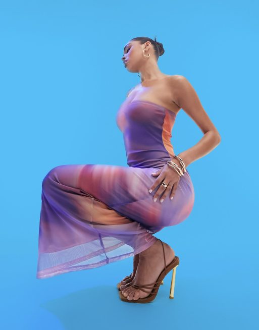 ASOS DESIGN - Maxi bandeaujurk van mesh in abstracte print