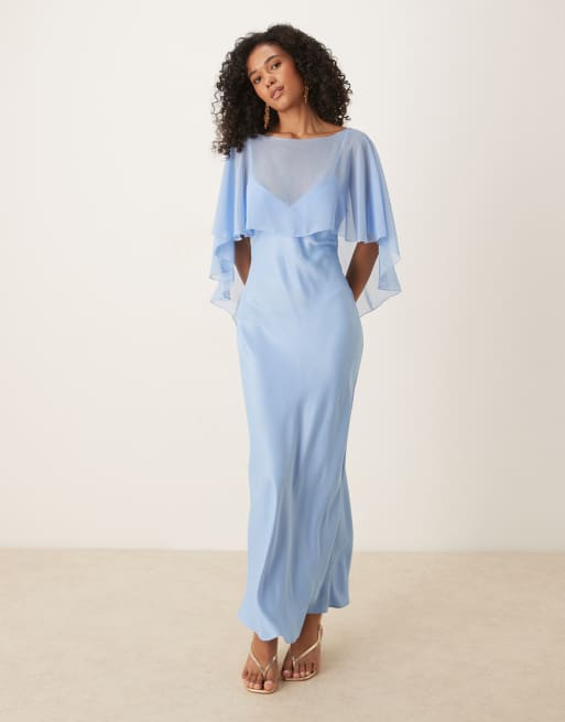 ASOS DESIGN - Maxi bardotjurk van satijn met capedetail in blauw