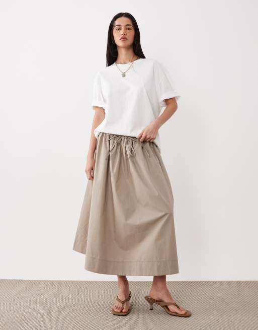 ASOS DESIGN - Maxi cirkelrok van popeline met gestrikte taille in stone