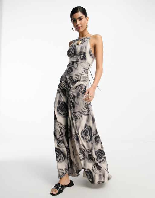 ASOS DESIGN - Maxi jurk met bandjes en gedraaid detail in mono roos
