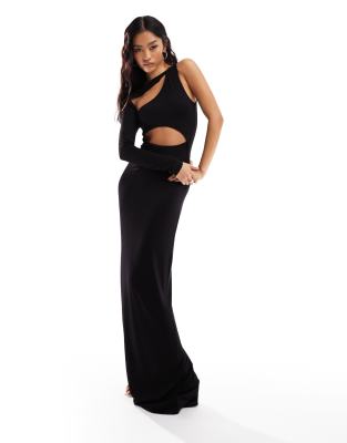ASOS DESIGN - Maxi jurk met blote schouder en uitsnijdingen in zwart