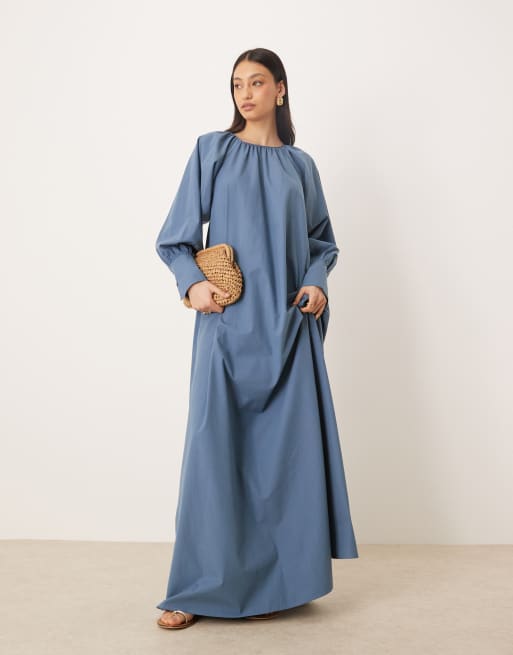 ASOS DESIGN - Maxi-jurk met brede manchetten in blauw