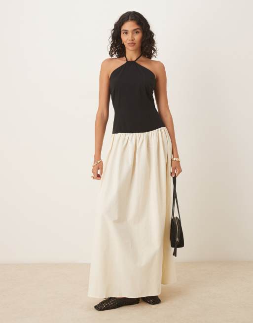 ASOS DESIGN - Maxi jurk met halternek, verlaagde taille en kleurvlakken in zwart en wit