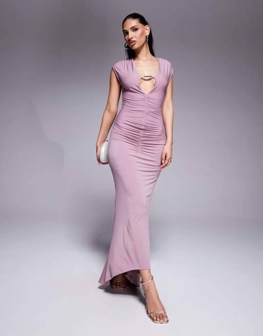 ASOS DESIGN - Maxi-jurk met kapmouwtjes en ruche in mauve