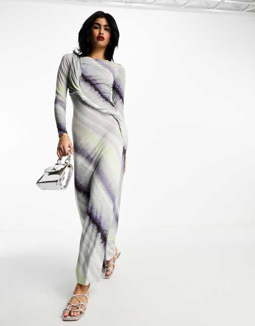 ASOS DESIGN - Maxi jurk met lange mouwen, gedraaid detail en diagonale strepen
